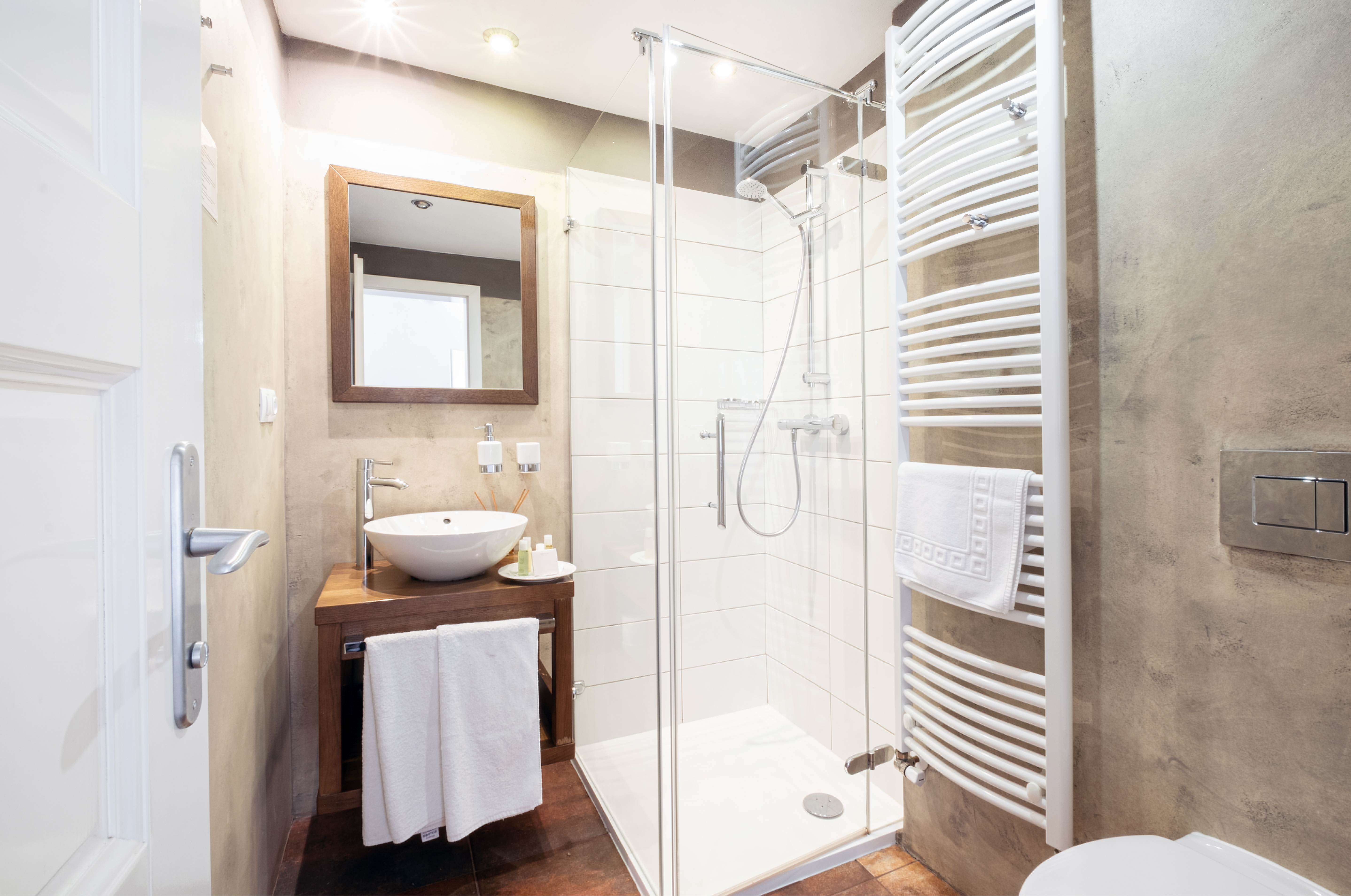 it compromises a bedroom and private bathroom with shower unit and toilet. There is an electric kettle and minibar at the suite.